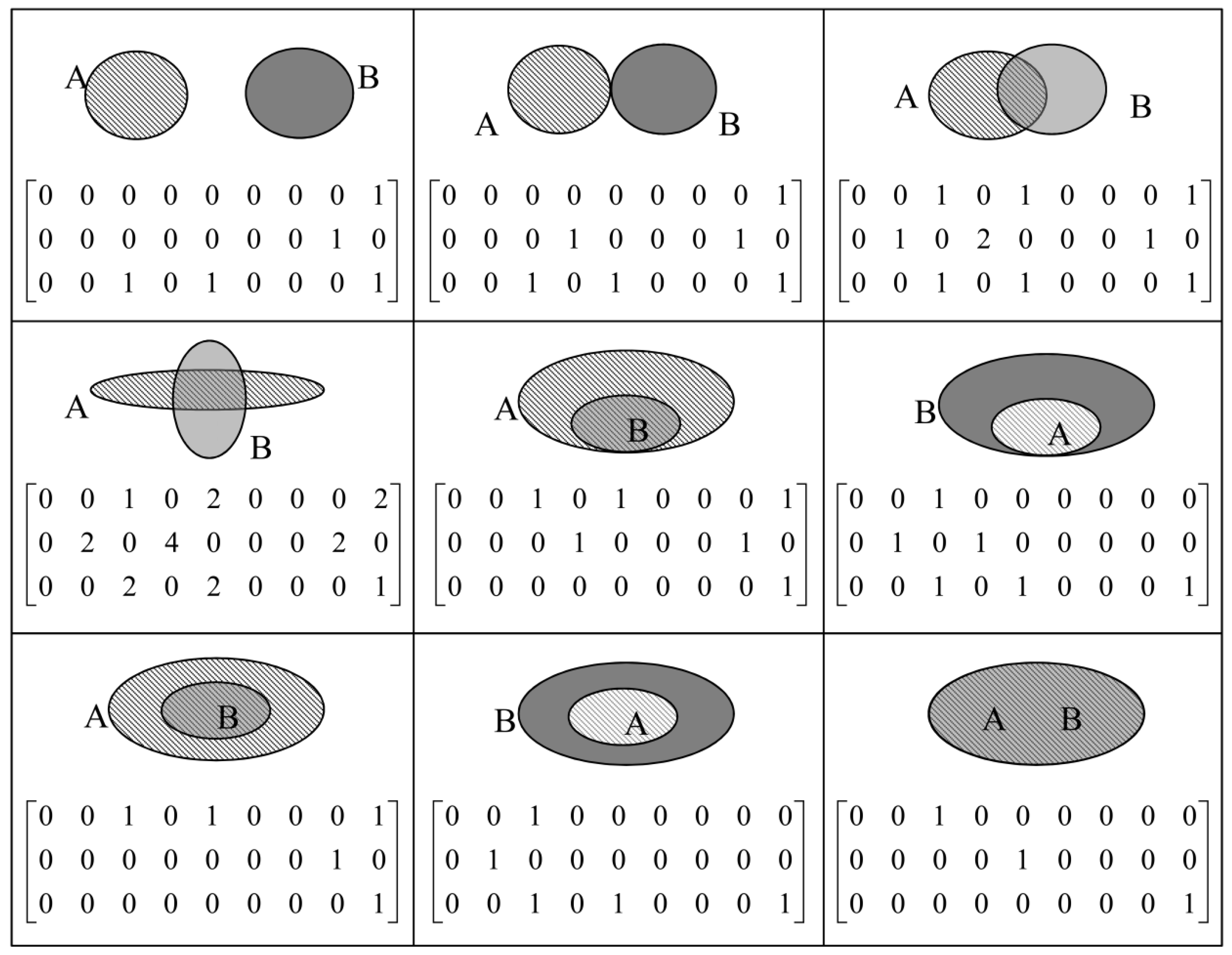 Ijgi Free Full Text A 27 Intersection Model For Representing Detailed Topological Relations Between Spatial Objects In Two Dimensional Space